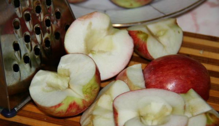 Яблоки вымой, очисти от сердцевины, натри на крупной терке.