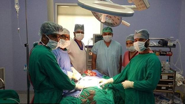 Управляющий больницы доктор Джитиндер Малхотра рассказал, что больного отправили на обследование, которое показало, что внутри у него находится некая "твердая масса".