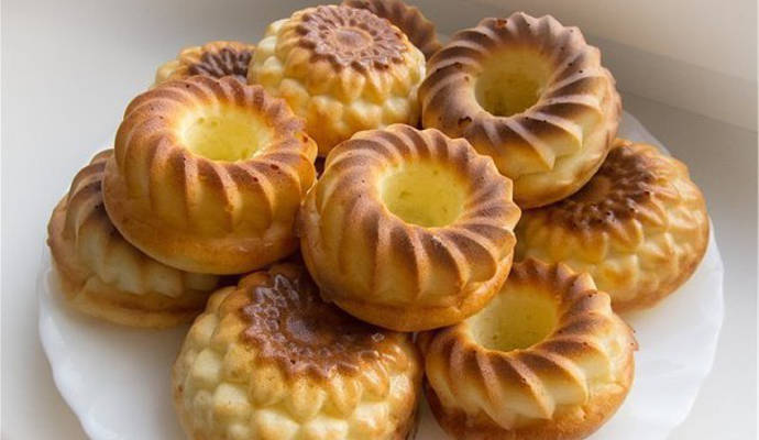 Берем творог, смешиваем его с ванилином, сахаром, яйцами. Добавляем манку, сметану, разрыхлитель . Хорошенько все перемешиваем до однородного состояния. Выкладываем тесто в формочки и ставим в разогретую до 180-200* духовку на 20-30 мин.