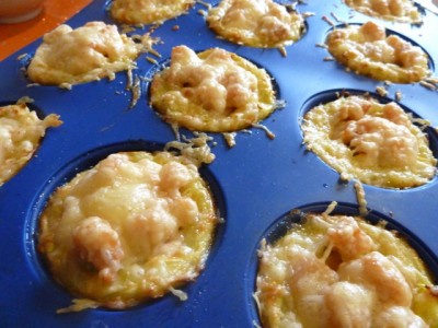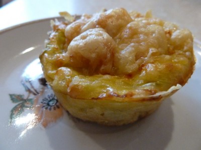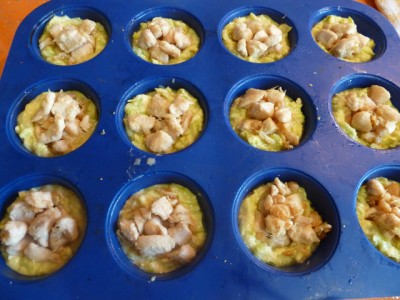 Кабачковую массу выложить в формочки для запекания чуть больше половины формы. В центр выложить куриное филе.