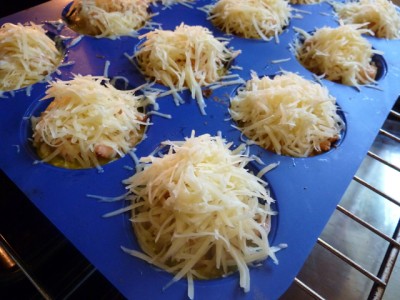 Посыпать сыром. У меня был Маасдам, но подойдет любой.