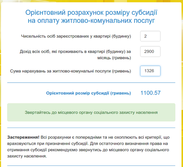 Примерный размер субсидии, на который могут претендовать потребители, можно узнать с помощью онлайн-калькулятора на сайте — //www.kmu.gov.ua/control/calculator.