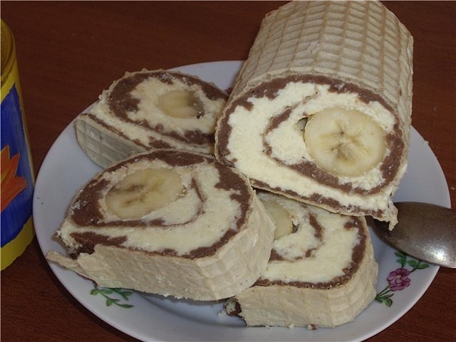 500 мл.молока 1 ст.лож какао 1 пачка ванильного сахара 1 пачка шоколадного крекера (измельчить на мясорубке ) 1 стак.сахара Все составляющие кроме печенья вскипятить хорошо помешивая.Тогда добавить печенье и хорошо перемешать.Теплым помазать вафли и пусть постоят чтобы стали мягкими.