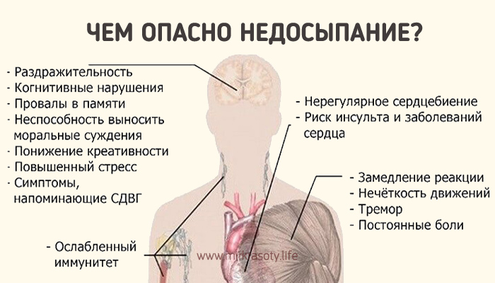 Более того, у мужчин, жаловавшихся на плохой сон, риск инфаркта миокарда (сердечного приступа, при котором отмирает сердечная мышца) был выше в 2,6 раза, а инсульта — в 1,5 раза.