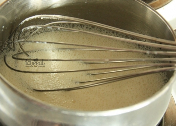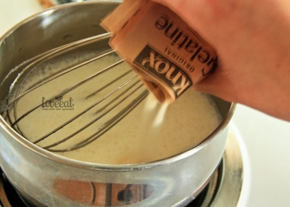 Итак, смешайте желатин с молоком и варите на среднем огне, постоянно помешивая.