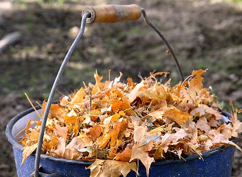 Собрав листья, увлажните их, плотно уложите и утрамбуйте. Есть несколько вариантов тары: специальная конструкция для листьев, размером метр на метр или больше с открытым верхом или мешки из толстого полиэтилена для садовых отходов, проколотые в нескольких местах.