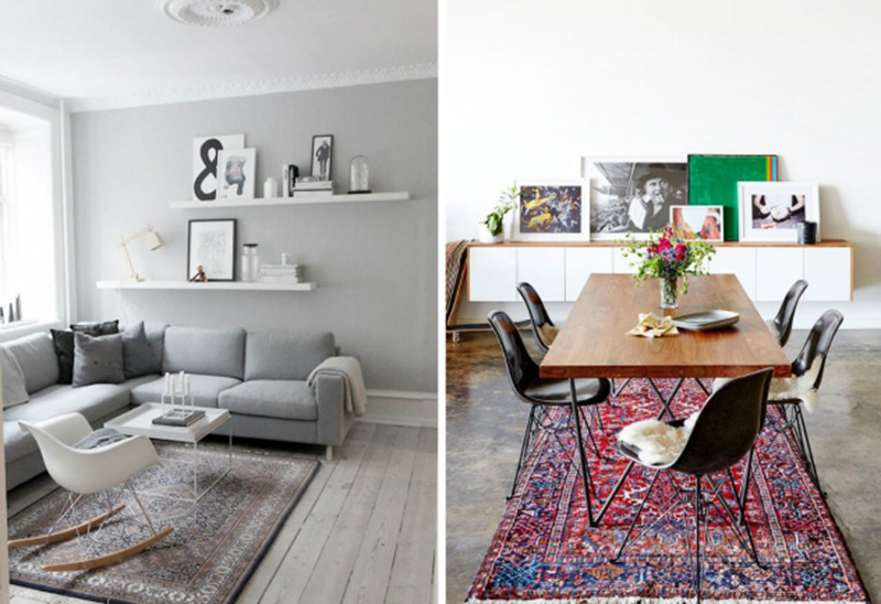 Однотонные покрытия, конечно же, добавляют помещению стиля, но они совершенно непрактичны. Ковры или плитка с узорами будут идеальным выбором, так как ухаживать за ними гораздо проще.