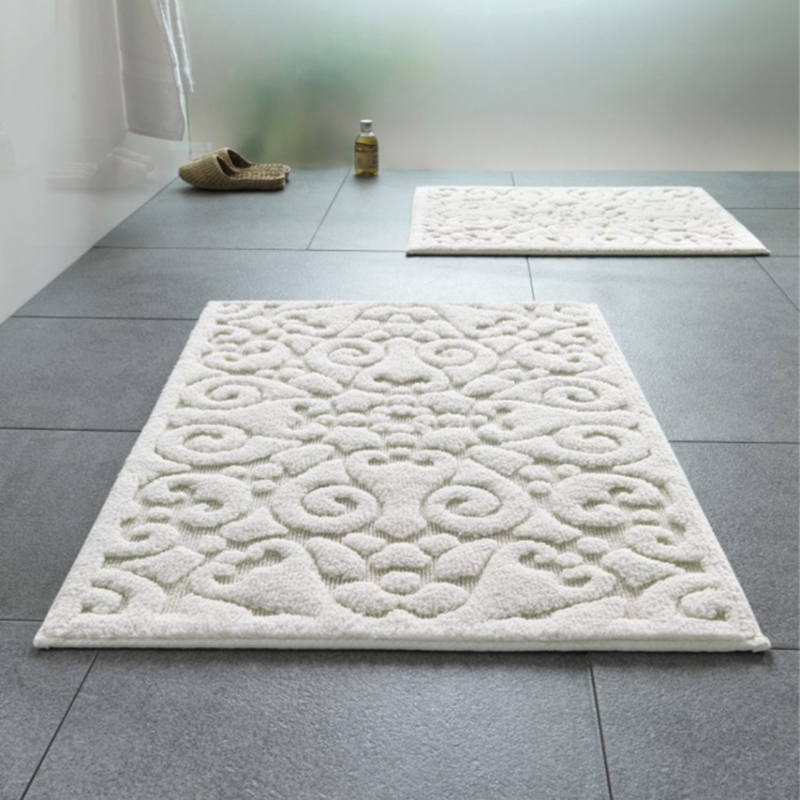 Чтобы полы в ванной не были травмоопасными, выбирай рифленую плитку или застели скользкие полы ковриком.