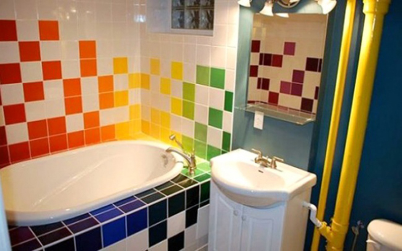 Добавь красок в свою ванную комнату, используя яркую глазурь, чтобы визуально расширить помещение.