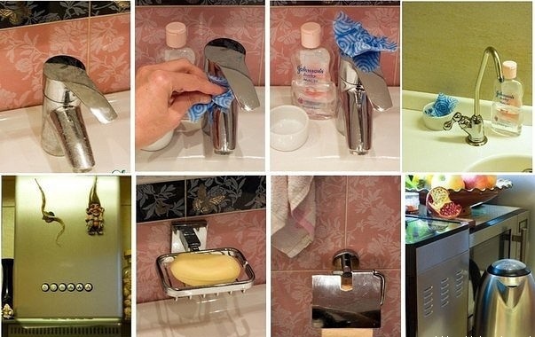 Я ругала себя за то, что не послушала советов опытных подруг и купила таки хромированные краны для ванной, а также чайник, вытяжку, микроволновку, плиту, хлебопечку... машину))) (шучу). Но однажды я в какой-то передаче увидела этот совет и с тех пор мои кухня и ванная сверкают. Этим способом успешно пользуюсь уже два года.