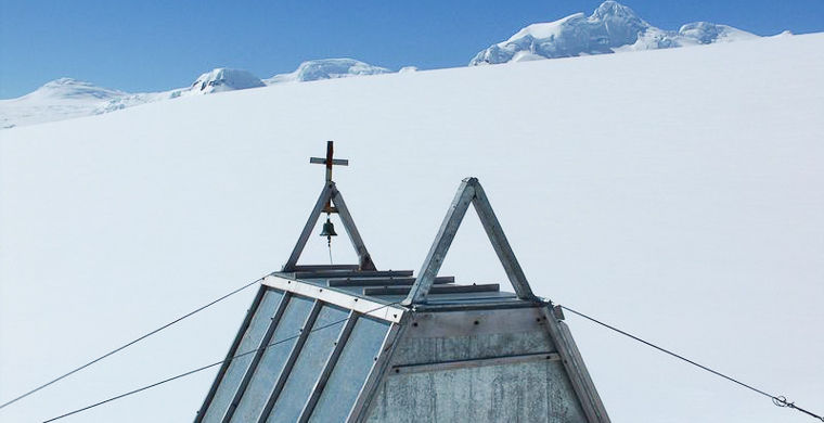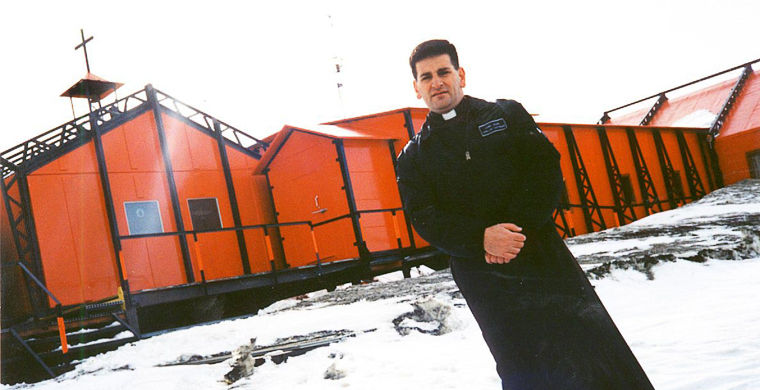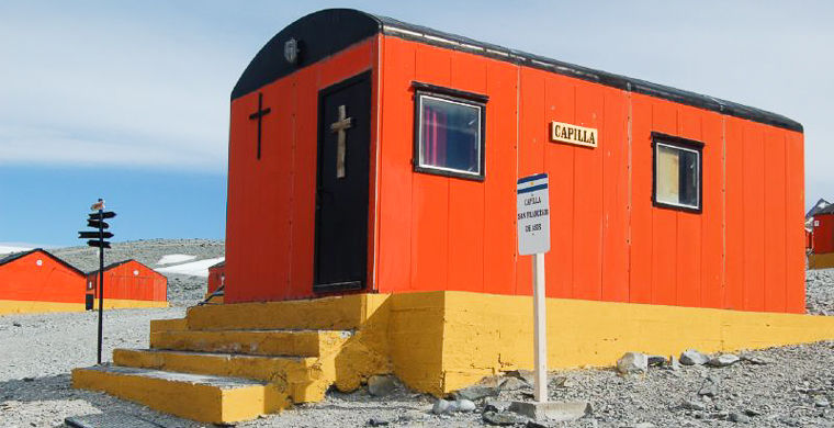 На фотографии рядом с металлическим каркасом церкви на очередной аргентинской исследовательской базе Марамбио отец Николас Даниэль Хулиан выглядит так, будто ему не помешала бы куртка потеплее. Он помог выстроить церковь на круглогодичной базе, которая считается важнейшей для Аргентины на континенте. Во время постройки тут был единственный в Антарктиде аэродром, и он по-прежнему остается одним из самых популярных, так как пригоден для посадки на шасси, за что получил название «Ворота в Антарктиду».