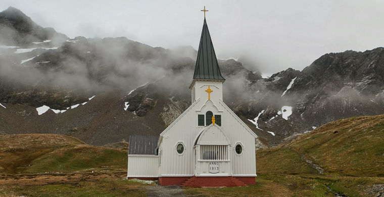 Этот неоготический храм построили в 1913 году на китобойной станции в Грютвикене — поселении в Южной Джорджии, основанном норвежским капитаном. Церковь сделали сами китобои, и она единственная по-прежнему используется по назначению после закрытия станции в 1966 году.
