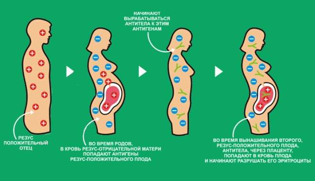 Гемолитическая болезнь новорожденных возникает при несовместимости крови матери и плода по резус-фактору, иногда по другим антигенам. Если у Rh-отрицательной женщины плод имеет Rh-положительную кровь, возникает резус-конфликт.