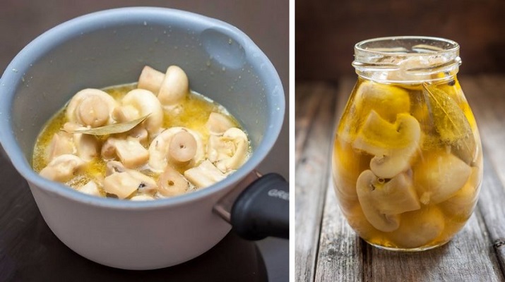 5. Уложите шампиньоны в банку, остудите и поставьте в холодильник на 4 часа. Готово!