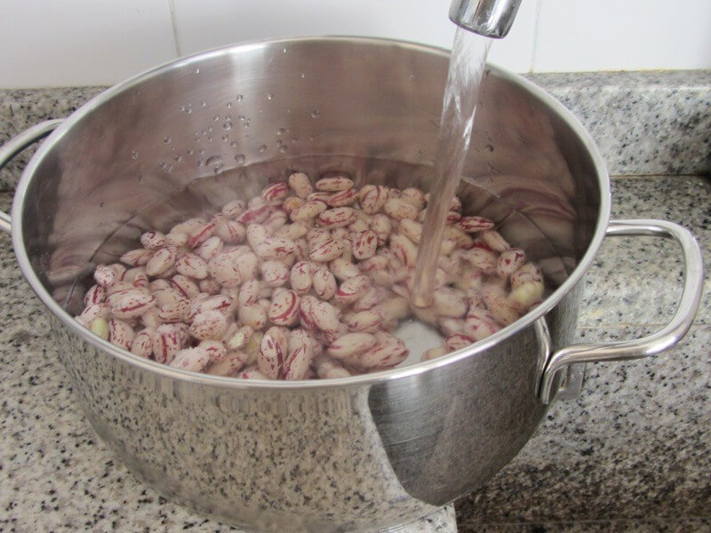 Я просто кипячу воду в чайнике, затем заливаю этой водой фасоль. Не забудьте, что фасоль набухает от воды, поэтому не жалейте воды, чтобы покрыть ее на пару сантиметров. Затем я накрываю крышкой и оставляю на столе.