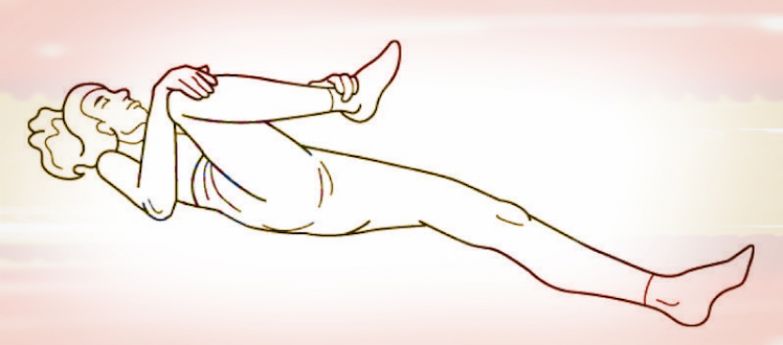1.Лягте на ровную поверхность, согни ногу, в которой чувствуешь боль, и осторожно потяни ее к плечу. Когда почувствуете растяжение, постарайтесь удержать ногу в таком положении 30 секунд. Разогните ногу, полежите немного, сделайте еще 2 подхода.
