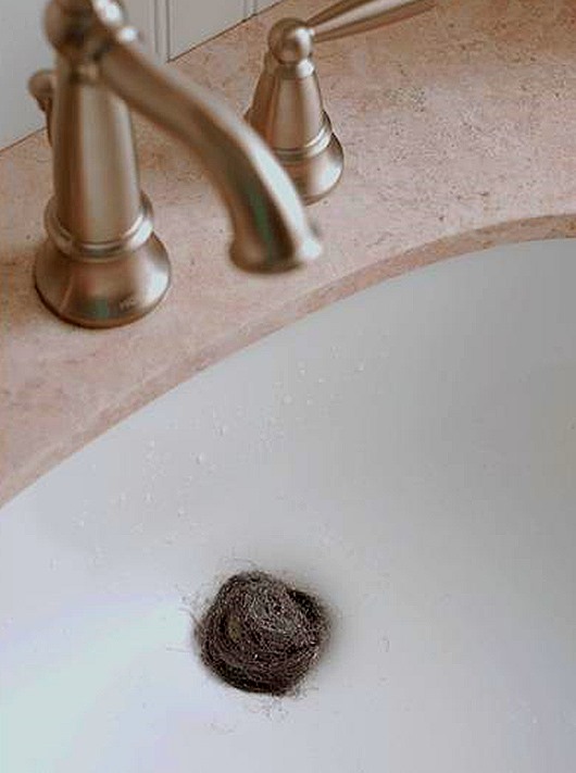 Если у вас нет под рукой специальной решетки для слива, положите туда небольшой моток проволочной мочалки. Вода будет прекрасно проходить, а все лишнее вы потом выбросите вместе с мотком.
