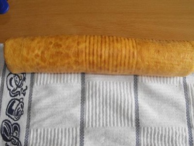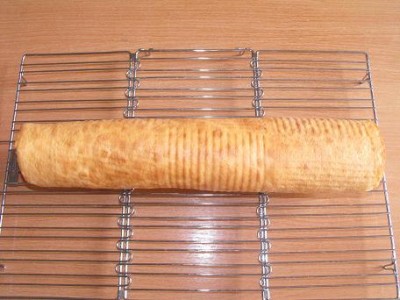 Готовый бисквит можно свернуть рулетом сразу или после остывания.