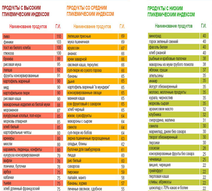 Следует отдавать предпочтение продуктам с низким ГИ, потому что углеводы таких продуктов превращаются в энергию постепенно и полностью.