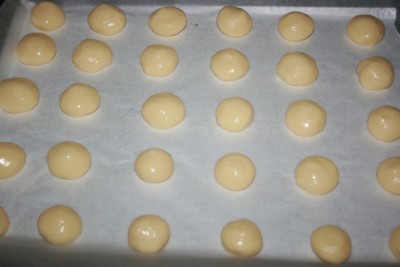 складывать на противень сверху бумаги для выпечки,делая расстояния