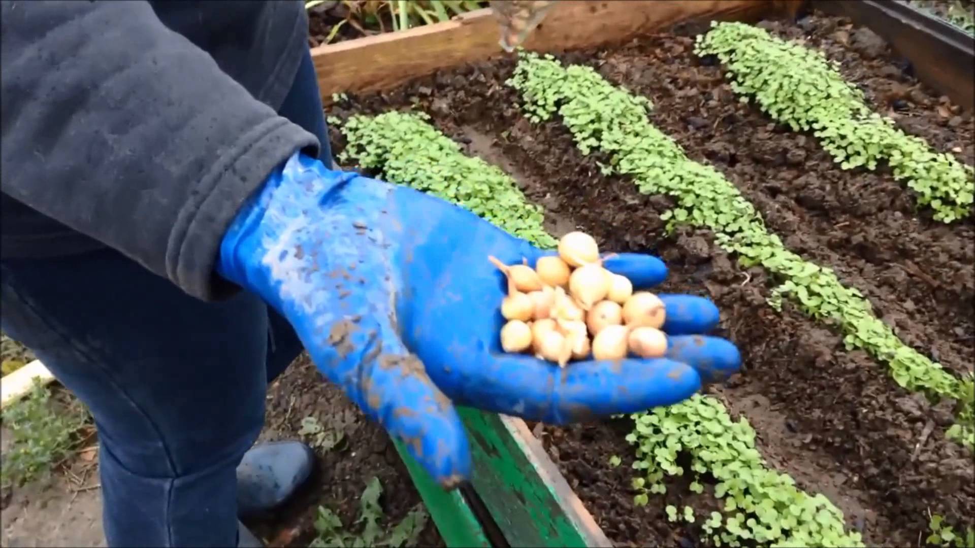 Теперь не ленюсь и подвергаю севок предпосадочной обработке. За день до посадки перебираю посадочный материал, выбраковывая из него подпорченные и подсохшие луковки: хороших головок они не дадут. Но такой негодный для получения репки севок не выбрасываю, а высаживаю его на отдельной грядке (без каких-либо обработок) – он дает мне зеленое перо. У остального качественного севка ножницами обрезаю сухие шейки и помещаю его в ведро с горячей (40-45° С) водой ровно на 10 минут. После чего горячую воду сливаю и заполняю ведро с луком холодной водой. Через пару минут севок погружаю в раствор любого комплексного органоминерального удобрения, приготовленного по инструкции, и оставляю напитываться полезными соединениями до следующего утра. Утром сливаю раствор и увожу ведерко с луком на дачу, где по приезду готовлю раствор Фитоспорина по инструкции и заливаю им севок на час-два, пока готовлю грядку для посадки. Землю на грядке перекапываю, разравниваю, делаю поперечные бороздки, проливаю их теплой водой и посыпаю табачной пылью. Севок, не промывая, высаживаю в борозды и присыпаю почвой.