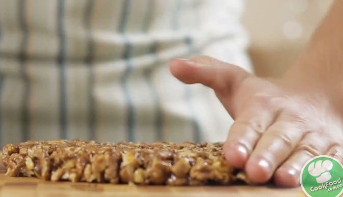 Острым нагретым ножом нарезаем гозинаки (козинаки) ромбиками.