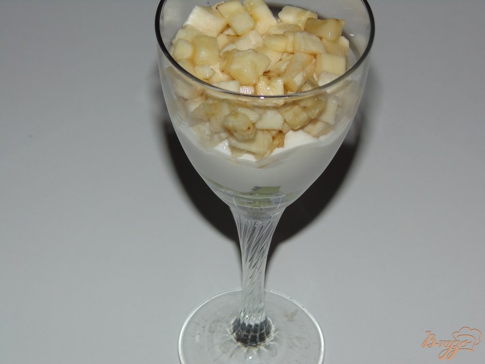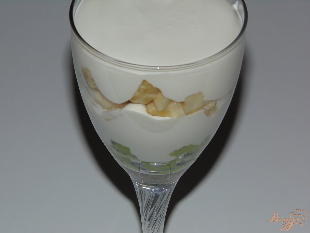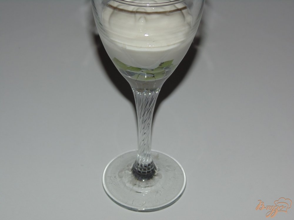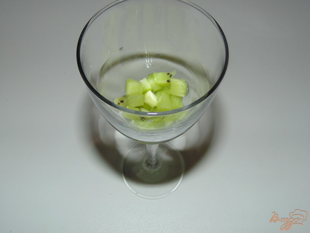 На дно бокала выложить нарезанные на кубики киви. Я взяла бокалы для вина, вы можете выбрать любую подходящую емкость, на ваше усмотрение.