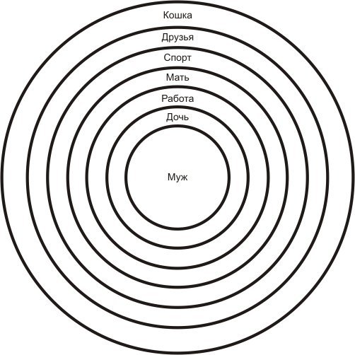 2-ой а круг — для мужа/жены, для того, с кем делите постель. Поэтому родители и дети, попадающие в этот круг говорят о проблемах, связанных с психологическим инцестом. Если супруга нет — это место должно быть пустым и не занятым. Тогда рано или поздно в него может придти партнер.