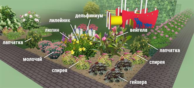 Вариант 1. Цветник располагается на солнечном месте вдоль дорожки