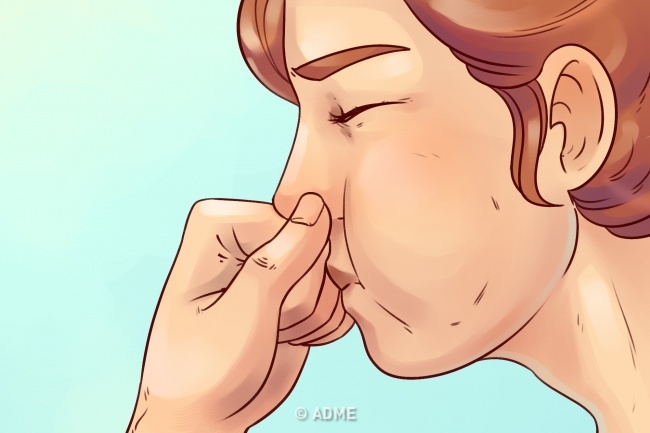 • Зажмите нос большим и указательным пальцами, закройте рот и глаза.