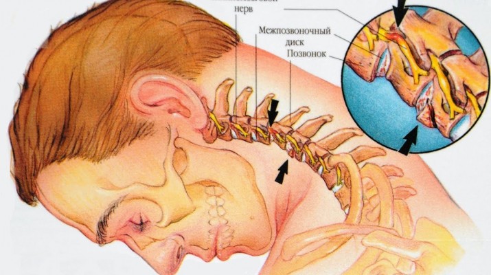 Первые проявления шейного остеохондроза — боли в спине, головные боли, головокружение, «мушки» в глазах, ухудшение слуха или шумы, а также покачивание при ходьбе в результате нарушения координации.