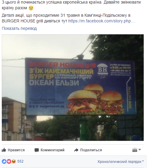 Скриншот поста аккаунта facebook.com/burgerhouse.kp