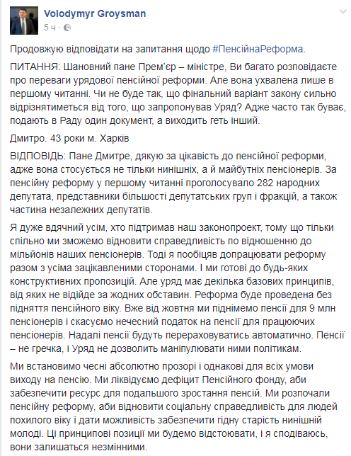Гройсман рассказал, когда пенсионеры получат новые пенсии