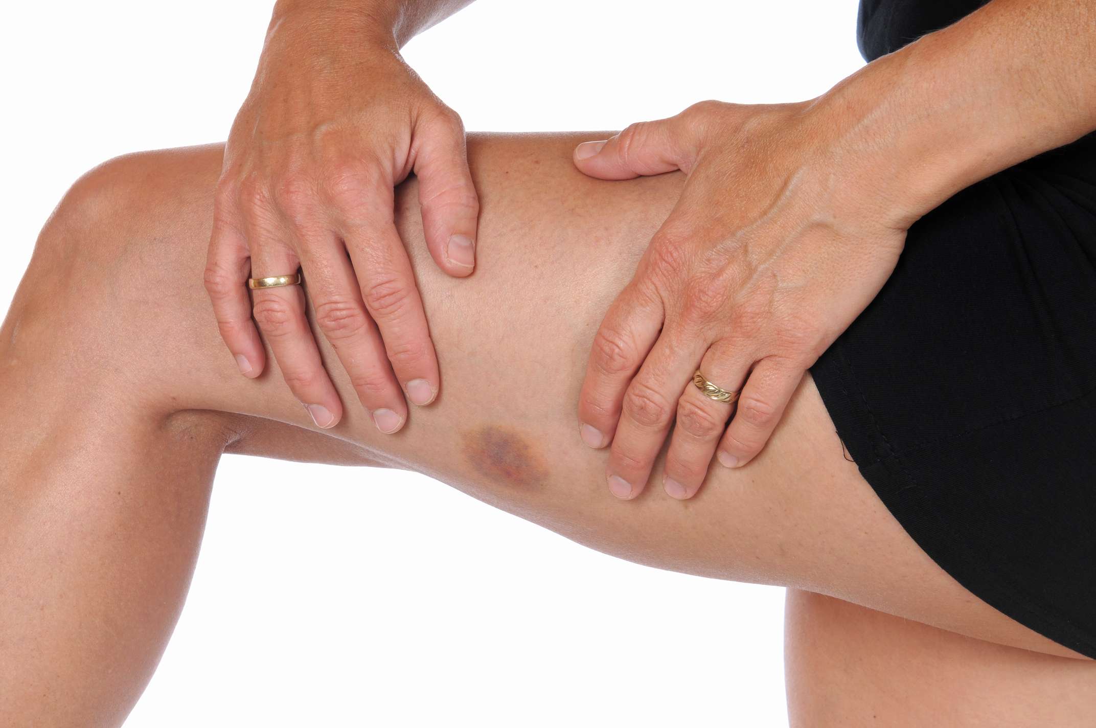 Любой тип травматических повреждений, например, падение, может вызвать разрыв капилляров (небольших кровеносных сосудов), из которых под поверхность кожи вытекают красные кровяные тельца. Это приводит к появлению на коже пурпурных или «сине-черных» синяков.