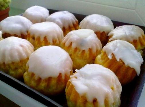 Готовые бабы выньте из форм и остудите. Проколите донышка баб зубочисткой в нескольких местах. Пропитайте их сиропом и украсьте помадкой.