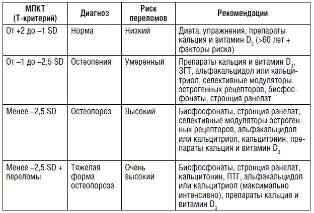 Таблица 2 — Рекомендации по профилактике и лечению остеопороза.