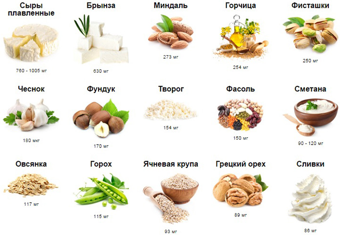 Содержание кальция в продуктах питания: