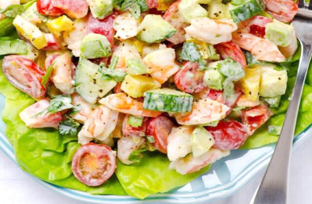 Успех лакомству обеспечивают свежие продукты, красивая подача. Половину куриной грудки, по два сваренных яйца и небольших помидора, одно авокадо нарезать кубиками. Хрустящий салат нарвать руками, уложить на прямоугольную тарелку. Оформить одинаковыми продольными полосками ингредиенты. Простой рецепт приготовления заправки включает горчицу, оливковое масло, фета, смешанные по столовой ложке.