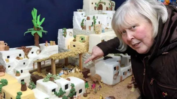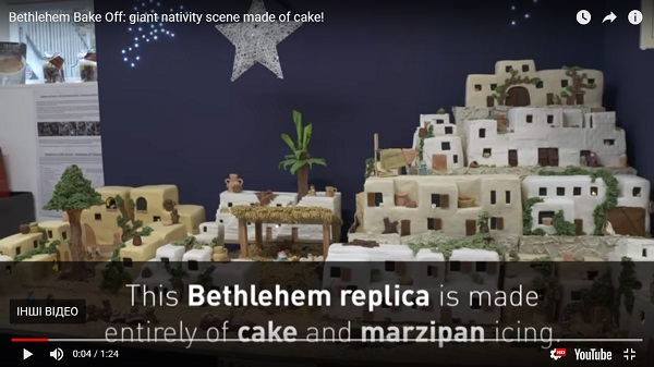 Британская домохозяйка с помощью подружек и соседок сделала гигантский торт "Вифлеем". На кулинарный шедевр женщинам понадобилось 90 килограммов мастики и 50 килограммов изюма.