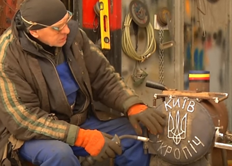 В Киеве пенсионер-волонтер Владимир Волошин создает для участников АТО из старых газовых баллонов печи с патриотическими надписями и авторским дизайном. Своей разработке придумал название – «укропечь». Мужчина самостоятельно проектирует модели, собирает и украшает национальными символами.