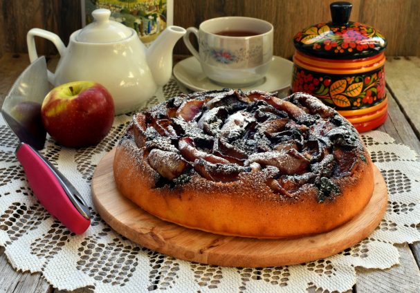 Выпечка в мультиварке не доставляет лишних хлопот. Добавив к обычному тесту яблоки и смородину, получим ароматный красивый пирог.