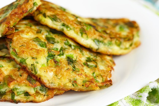 Подавать оладьи со сметаной. В нее можно добавить пропущенный через пресс зубчик чеснока.