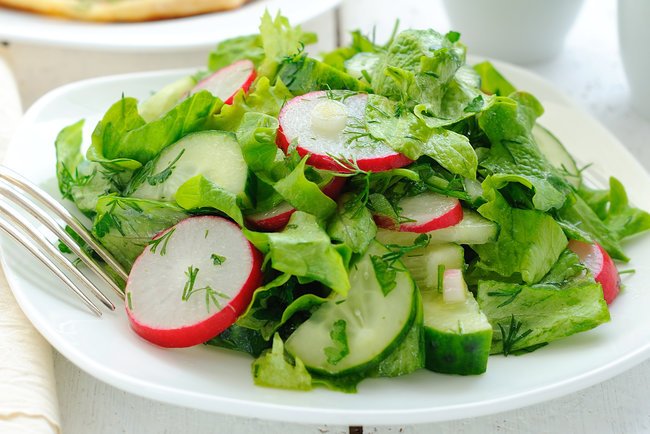 Наш вкусный и полезный салат из капусты редиса и огурцов готов. Подавайте его к столу вместе с хрустящими свежим хлебом или в качестве гарнира к мясным блюдам.