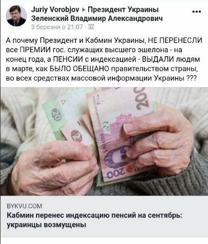 Он задался вопросом, почему власть в лице Владимира Зеленского и Кабинета министров не перенесли выплату премию госслужащам, а из-за нехватки средств в бюджете пострадали обычные пенсионеры.