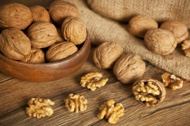 Самый доступный и бюджетный для нас грецкий орех, можно сказать, кладезь полезных веществ. В нем есть витамины А, В1, В2, Е, РР, С, Е, железо, цинк, калий, кальций, йод, фосфор и омега-3 жирные кислоты, которые помогают уменьшить уровень «плохого холестерина». Удивительный факт: в нем очень много меди, которая защищает кожу от воздействия ультрафиолета. Грецкий орех хорошо укрепляет иммунитет. Но его не стоит употреблять людям с повышенным давлением и при анемии. В 100 г грецкого ореха - 654 ккал, дневная норма – до 5 орехов.