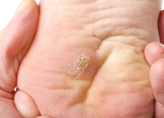 Стержневые мозоли представляют собой твердые, загрубевшие участки кожи с точкой (пятнышком) в центре. Они не имеют полости, зато обладают стержнем, уходящим глубоко в толщу эпидермиса.